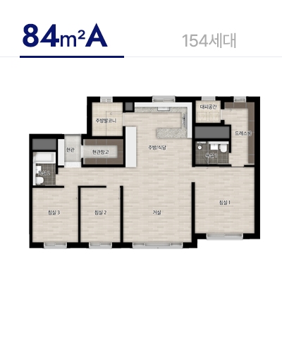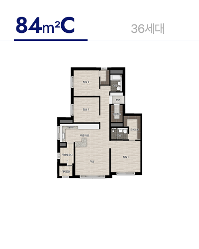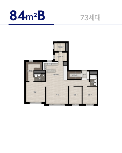 선호도 높은 중형74, 84Type 전세대 남향배치
